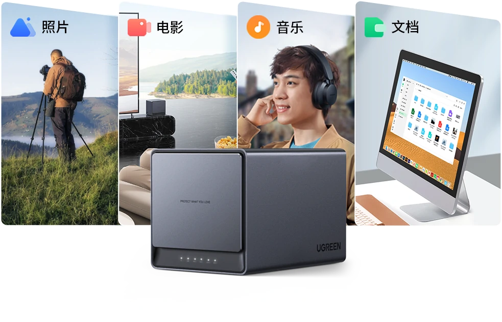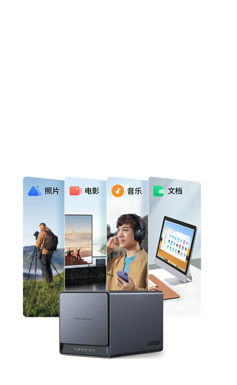 四盘位结构存储更多可能,兼容3.5/2.5英寸硬盘,不同储存